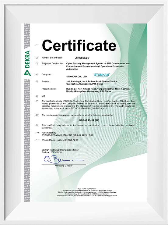 Fundada en 2003, STONKAM CO., LTD, galardonada como empresa nacional «Little Giant», es una empresa nacional de alta tecnología que integra I+D, fabricación inteligente transnacional y servicio de ventas para nuestros clientes. Con bases de producción avanzadas establecidas en Guangzhou (China) y Tailandia, STONKAM ha creado una estructura de producción global sinérgica mediante operaciones coordinadas entre ambos países. Nos hemos dedicado al campo de la imagen artificial y los vehículos inteligentes, y hemos creado una rica biblioteca tecnológica para el desarrollo de soluciones de visión y monitorización de vehículos, así como de sistemas de seguridad proactivos. Somos reconocidos como Centro de Investigación de Tecnología de Ingeniería de Plataformas de Monitorización y Sistemas de Conducción Asistida por Vehículos Interactivos Inteligentes de Guangdong. También nos complace haber obtenido la acreditación de CNAS para nuestro centro de pruebas interno. 22 años de desarrollo e innovación en este campo han permitido a STONKAM convertirse en el proveedor líder mundial de soluciones de visión para vehículos.