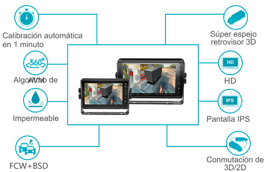 Sistema todo en uno de vista envolvente 360 ha integrado algoritmo de AVM(Vista Panorámica), puede facilitar la visualización panorámica sin caja de control, ofrece un viaje sin punto ciego. La calibración automática se cumple en solo 1 minuto y admite la corrección automática del plano, lo que ahorra tiempo y esfuerzo. Soporta FCW (Alerta de Colisión Frontal) y BSD (Detección de Puntos Ciegos). Se puede usar en combinación con cámaras y radares de detección de peatones para aumentar la seguridad a la conducción de camiones, transporte público y vehículos de emergencia.