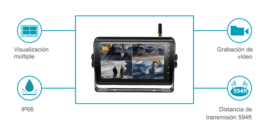 El Monitor de Videovigilancia Vehicular Inalámbrico de 7 Pulgadas, HD y Resistente al Agua, con Función de Grabación, cuenta con una carcasa impermeable IP66 que integra funciones de grabación y pantalla táctil. Ofrece un alcance de transmisión en espacio abierto de hasta 180 metros, con una señal estable y alta resistencia a interferencias. Compatible con modos de visualización multipantalla, es ideal para una amplia gama de vehículos, como camiones, carretillas elevadoras y volquetes mineros.