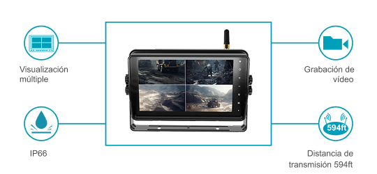 ¡El monitor de 10,1 pulgadas de alta definición para videovigilancia vehicular inalámbrica, con función de vista cuádruple y grabación de video resuelve perfectamente sus problemas! |