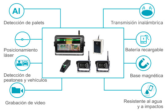 El monitor inalámbrico AI de STONKAM integra grabación y funciones inteligentes como detección de palets, posicionamiento láser y reconocimiento de peatones/vehículos, garantizando seguridad y eficiencia incluso con visibilidad limitada.